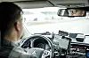 Den unge taxachauffør kører til lufthavnen flere gange om dagen, og når der er et øjebliks pause, nyder han at tjekke mobilen, mens han venter på passagerer.Foto: Oscar Scott Carl