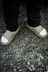Når man kører 12 timer om dagen, kan det godt blive varmt. Derfor er de sandaler, Inuujuk købte på sin ferie på Mallorca, helt perfekte.Foto: Oscar Scott Carl