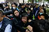 Flere hundrede personer var mødt op foran den retsbygning, hvor en domstol natten til tirsdag afgjorde, at 45 prodemokratiske aktivister skulle sendes i fængsel. Også politiet var mødt talstærkt op.