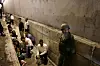 Israelere søger ly på grund af raketbeskydning fra Hizbollah. Billedet er fra det centrale Israel tidligere tirsdag.