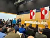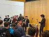 Præsentationen er lidt i 11 endnu ikke begyndt, og Katuaqs Lillesal er propfyldt med mennesker, inklusiv masser af udenlandske journalister og alt deres udstyr.
